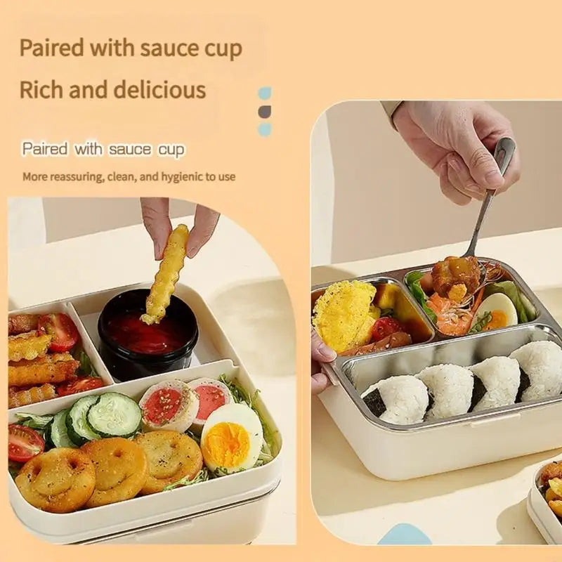 Effortlessly organize rice, and sauces during school lunches, office breaks, or outdoor picnics while portable slides smoothly into backpacks or bags.