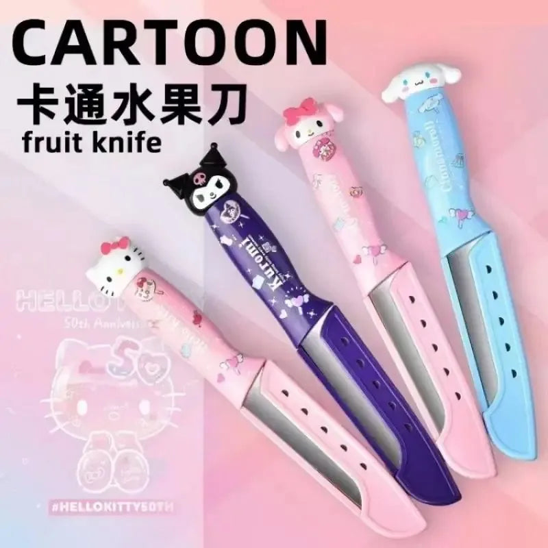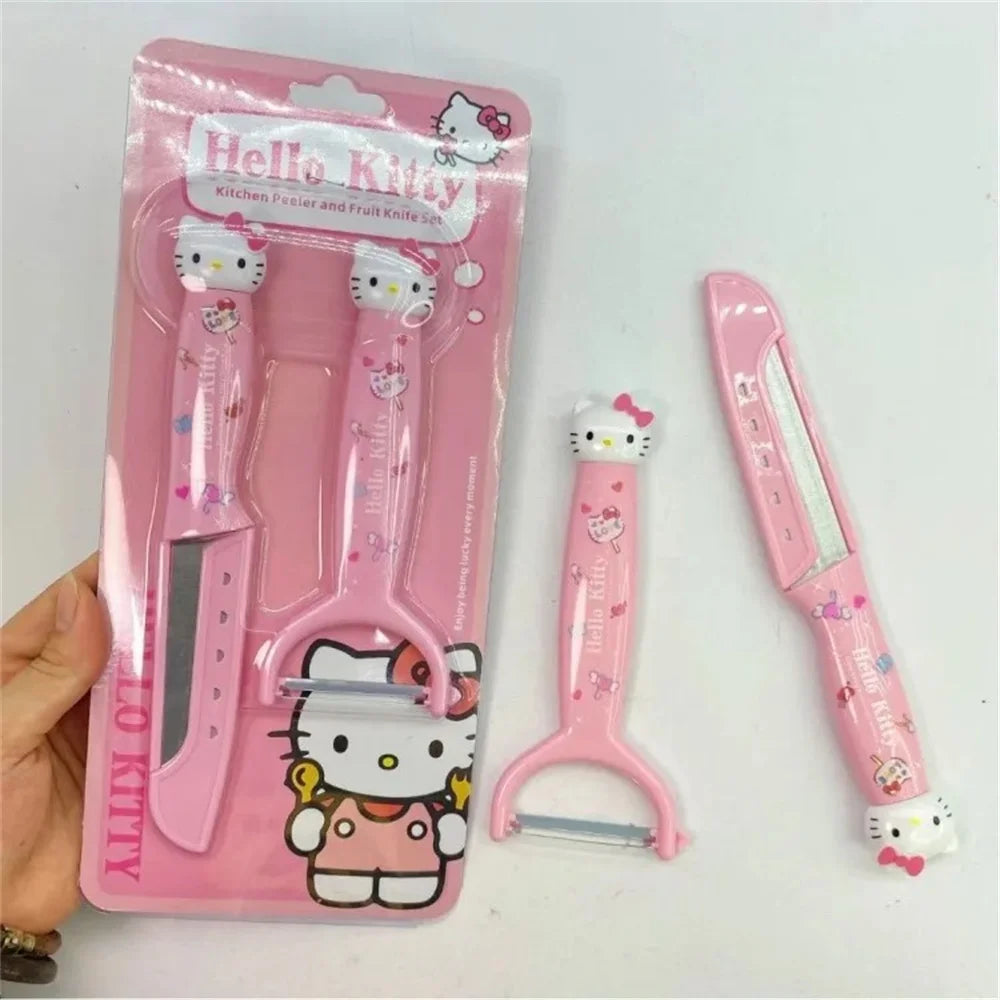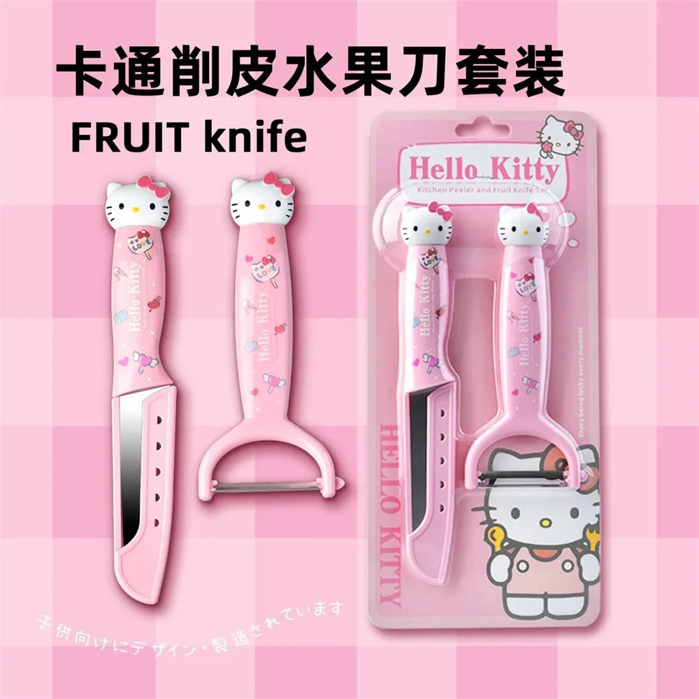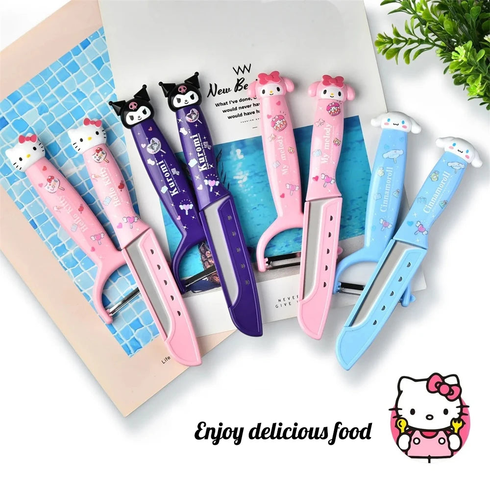 Kawaii Hello Kitty Fruit Peeling Knife Set Sanrio Anime Cute Kuromi Cinnamoroll My Melody Multifunctional Stainless Steel Peeler