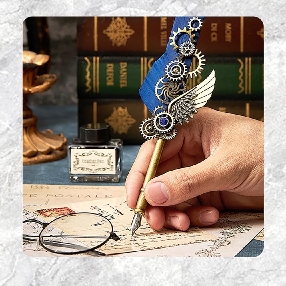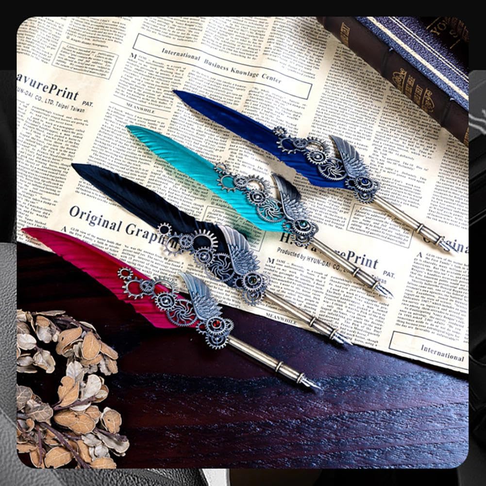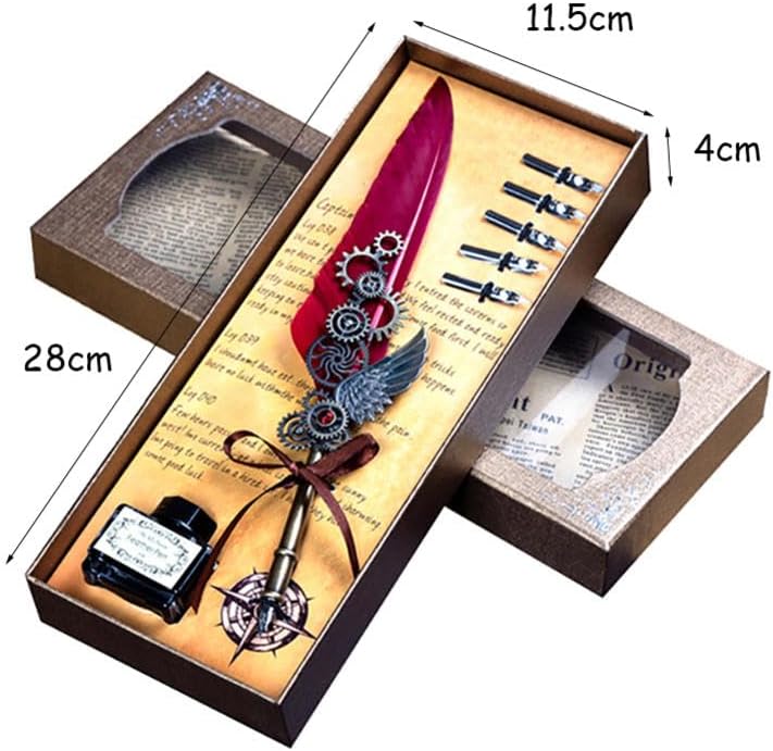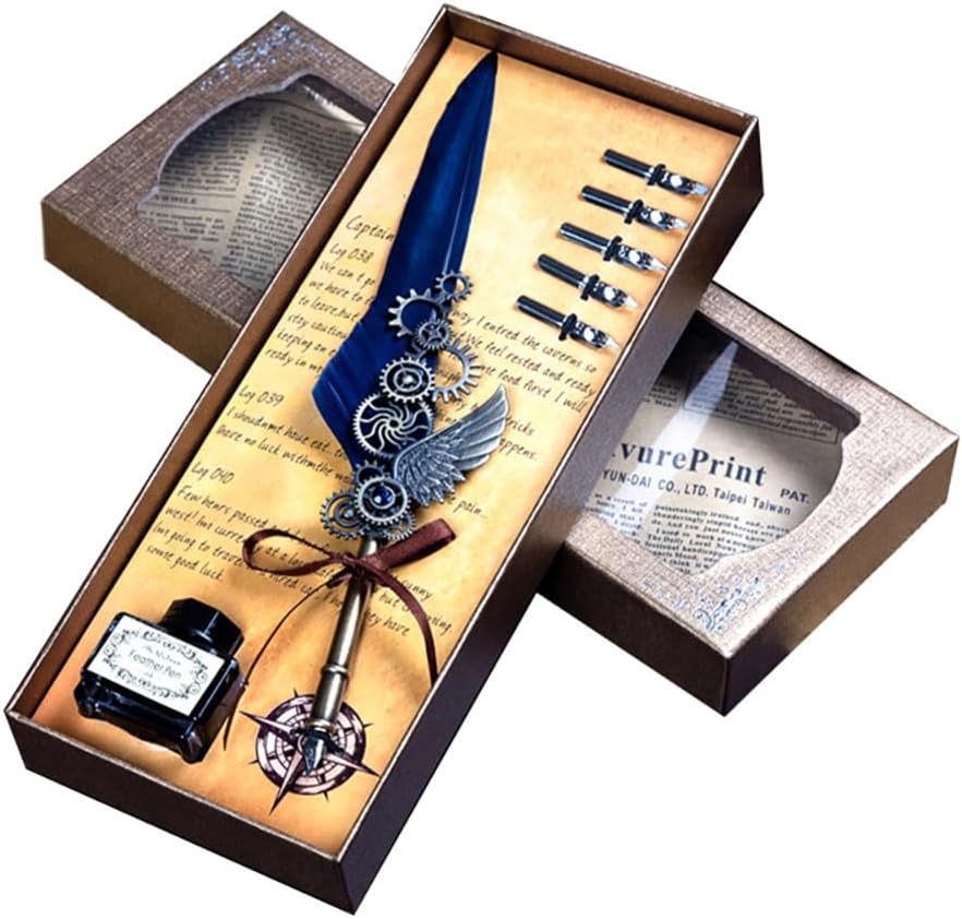Quill Pen,Feather Pen,Quill Pen And Ink Set,Quill Pens For Writing,Feather Pen Set,Wings Fountain Pen Dip Pen Quill And Ink Set For Writing With Black Ink 5 Replaceable Nibs Gift Set